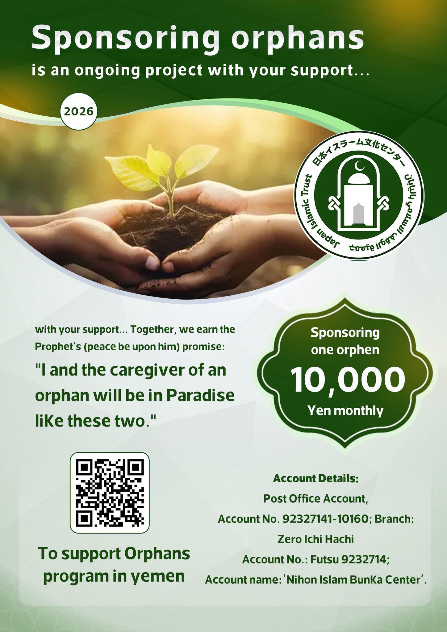イエメン紛争が始まって以来、イエメンの孤児たちの苦しみは続いています。何千人もの殉教者や内戦の犠牲者の子供たちが孤児のリストに加えられています。私たちは、皆さまが支援の手を差し伸べ、子どもたちの生活の糧となる月々一万円のスポンサーシップを提供し、孤児の教育、ケア、養育に貢献してくださるようお願いしております。